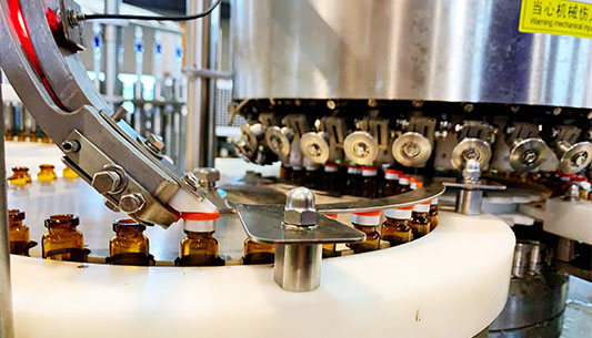 該線由QCK600型立式超聲波洗瓶機(jī)、ASMR620/60型熱風(fēng)循環(huán)式滅菌干燥機(jī)、DGF600型灌裝軋蓋機(jī)三臺單機(jī)組成,分為清洗、干燥滅菌和灌裝封口三個工作區(qū),全線可聯(lián)動生產(chǎn),也可單機(jī)使用,該線融入了千山藥機(jī)自主知識產(chǎn)權(quán)的多項(xiàng)專利技術(shù),符合新版GMP要求。。